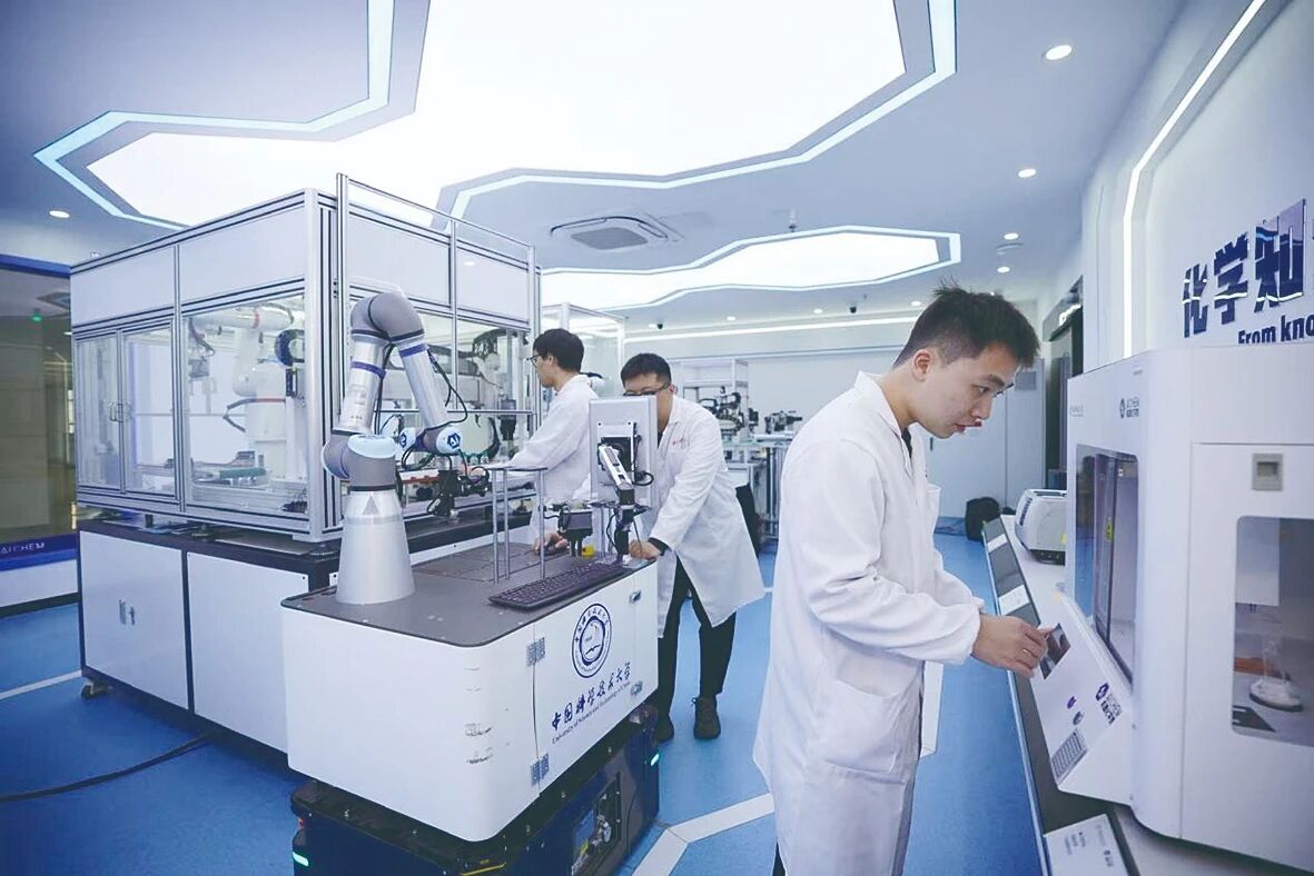 中国科学技术大学东校区,精准智能化学全国重点实验室里,体形敦实的“机器化学家”穿梭在操作台之间,机械手臂灵活地配制化学试剂,青年科研人员输入指令,隔空控制机器人的动作。来自不同专业领域的年轻人打破学科壁垒,“抱团”冲破科研传统的束缚,拥抱科研范式变革带来的新机遇。