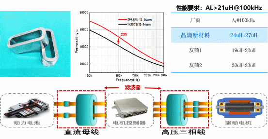 该材料突出的高频高磁导率与低损耗特性,已通过实验室多维度测试及中试规模化验证,核心性能指标达行业领先水平。这一特性正是AI 时代下电力电子器件实现小型化、高效化的关键。作为新能源汽车车载共模电感的新一代核心材料,它能显著提升抗电磁干扰能力,使车辆运行更灵敏、更安全、更节能。