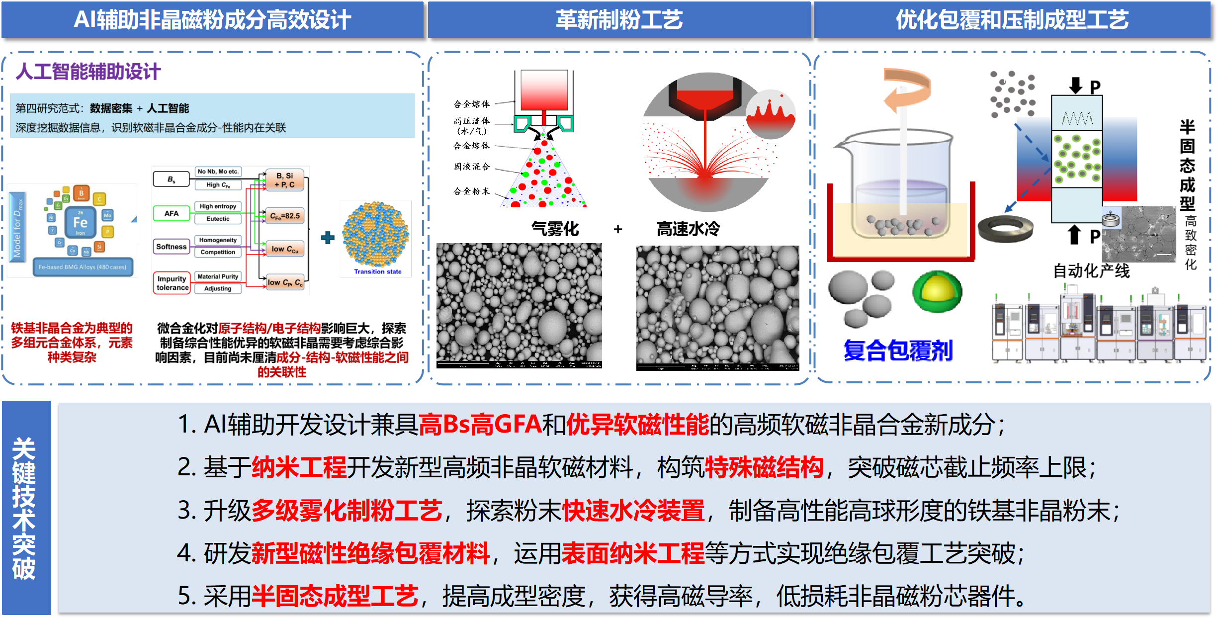 图4 AI辅助新型高频低损耗非晶粉末材料体系的关键技术储备