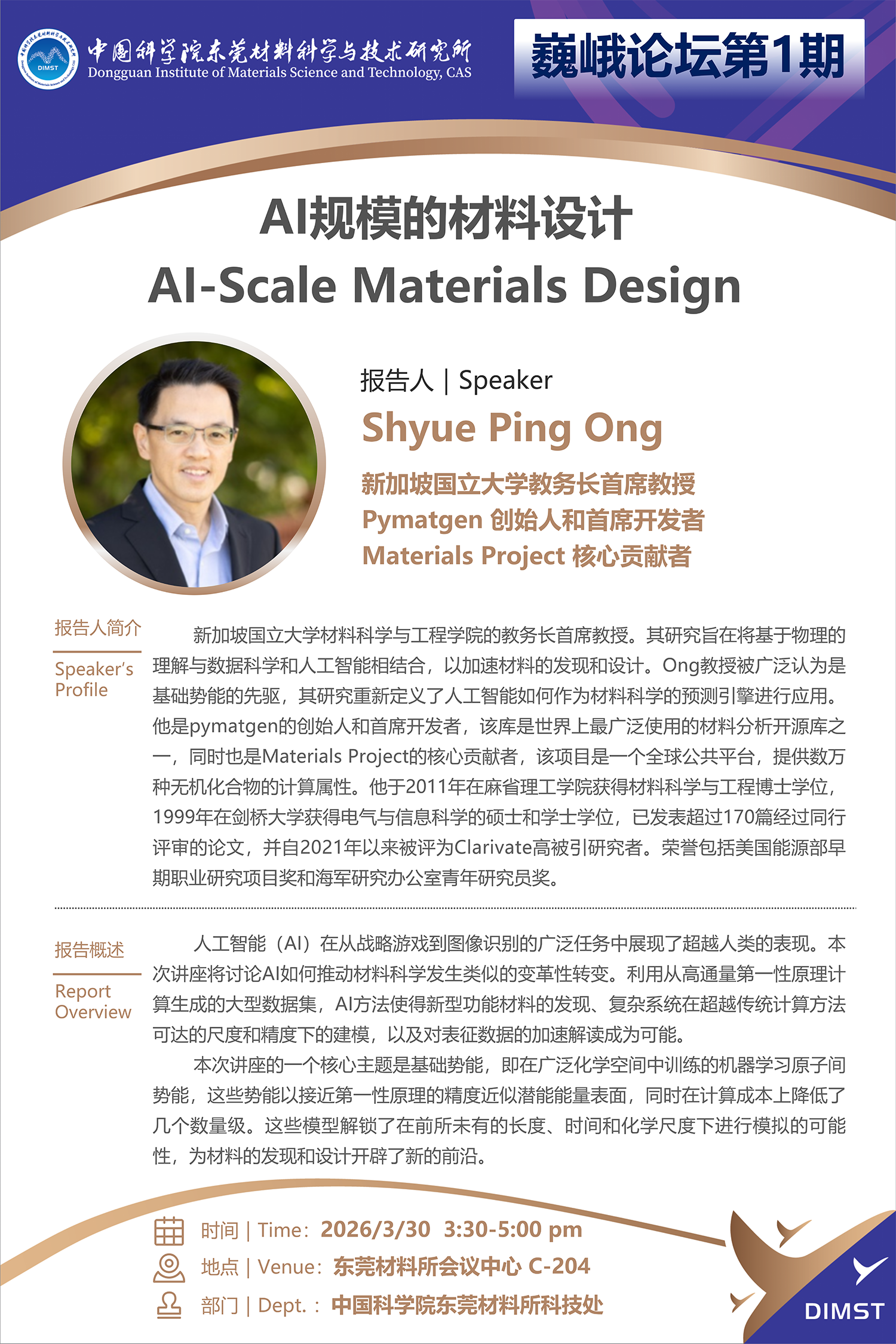 巍峨论坛第1期 | AI-Scale Materials Design(AI规模的材料设计)